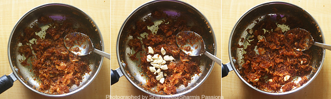 - Mix well and cook for 3 mins until the moisture leaves, then add cashews,cardamom powder mix well and switch off.
