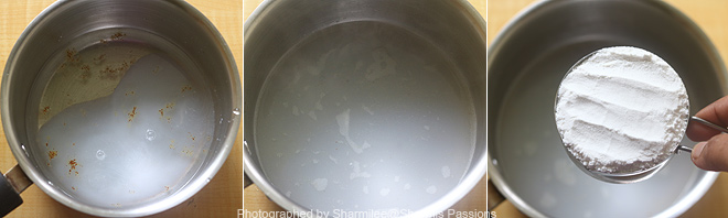 - For stuffing, heat powdered jaggery with very little water. Mix well to melt.