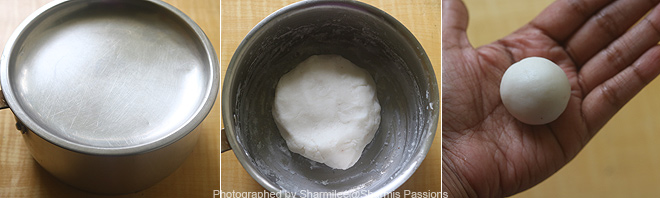- Set aside for few mins.When its warm to handle knead the dough.Pinch a small lemon sized portion roll into a ball.
