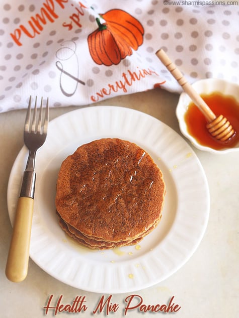 Health mix pancakes recipe a great alternate to the porridge and kids will love it for sure.