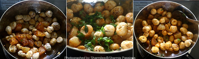 - Now add roasted makhana and give a toss.Add mint and coriander leaves mix well and switch off.