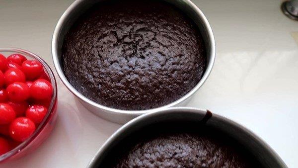 - Divide the batter between the cake pans and bake in oven for 20 to 25 mins. Remove and cool completely.