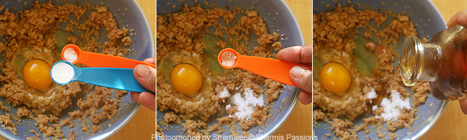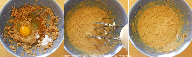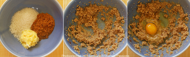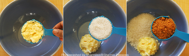 - To a mixing bowl first add butter, white sugar,brown sugar.